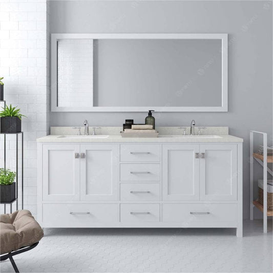 Virtu USA Caroline Avenue Contemporary White 72" Double Square Sink Vanity with Dazzle White Top