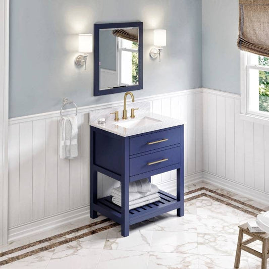 Wavecrest Jeffrey Alexander Contemporary 30" Hale Blue Single Undermount Sink Vanity, Marble Top