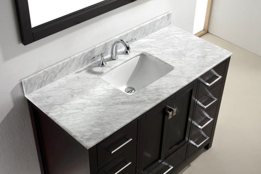 Virtu USA Caroline Avenue 48 Single Bathroom Vanity Set in Espresso w/ Italian Carrara White Marble Counter-Top| Square Basin