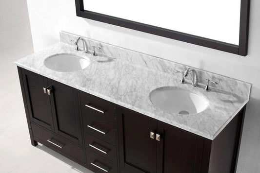 Virtu USA Caroline Avenue 72 Double Bathroom Vanity Set in Espresso w/ Italian Carrara White Marble Counter-Top |Ê Round Basin