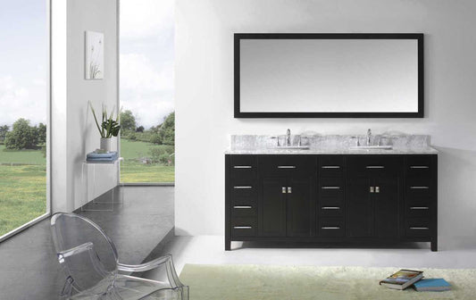 Virtu USA Caroline Parkway 72 Double Bathroom Vanity Set in Espresso w/ Italian Carrara White Marble Counter-Top | Square Basin