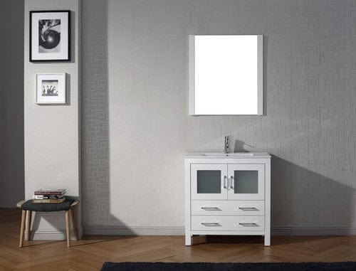 Virtu USA Dior 30 Single Bathroom Vanity Set in White w/ Ceramic Counter-Top | Integrated Sink