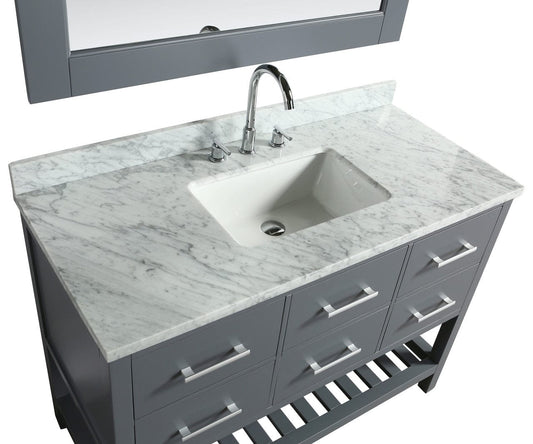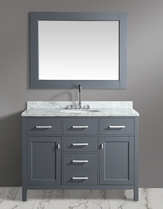 Design Element London Cambridge 48" Vanity in Gray w/ Carrara Marble Countertop | Square Basin