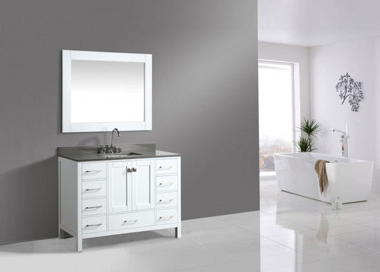 Design Element London Hyde 48" Vanity in White w/ Quartz Top in Gray and Mirror | DEC082C-W-GT