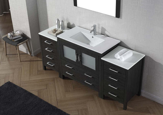 Virtu USA Dior 72 Single Bathroom Vanity Set in Zebra Grey w/ Ceramic Counter-Top | Integrated Sink