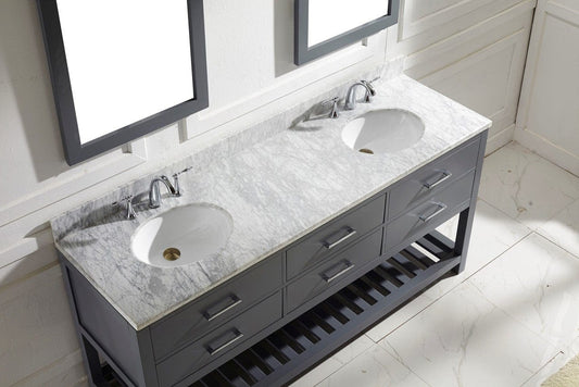 Virtu USA Caroline Estate 72 Double Bathroom Vanity Set in Grey w/ Italian Carrara White Marble Counter-Top |Ê Round Basin