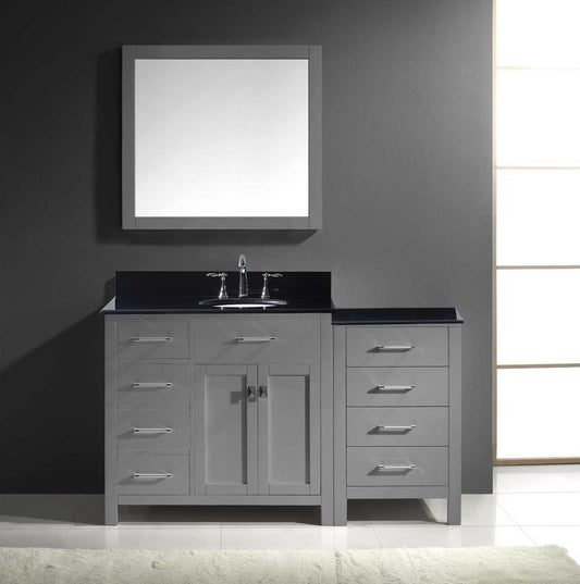 Virtu USA Caroline Parkway 57 Single Bathroom Vanity Set in Grey w/ Black Galaxy Granite Counter-Top | Square Basin - Rightside Drawer