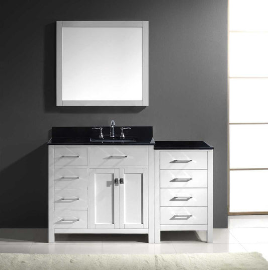 Virtu USA Caroline Parkway 57 Single Bathroom Vanity Set in White w/ Black Galaxy Granite Counter-Top | Square Basin - Leftside Drawer