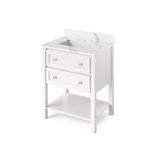 Jeffrey Alexander Adler Transitional 30" White Single Undermount Sink Vanity w/ Quartz Top