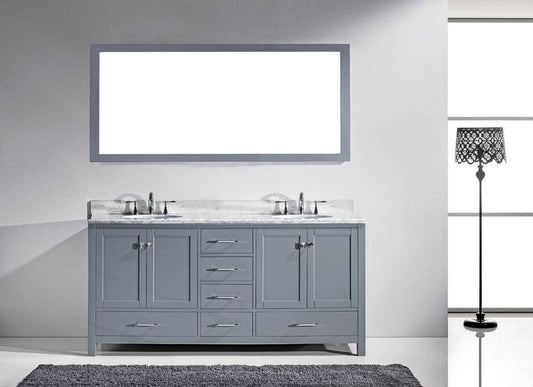 Virtu USA Caroline Avenue 72 Double Bathroom Vanity Set in Grey w/ Italian Carrara White Marble Counter-Top | Round Basin