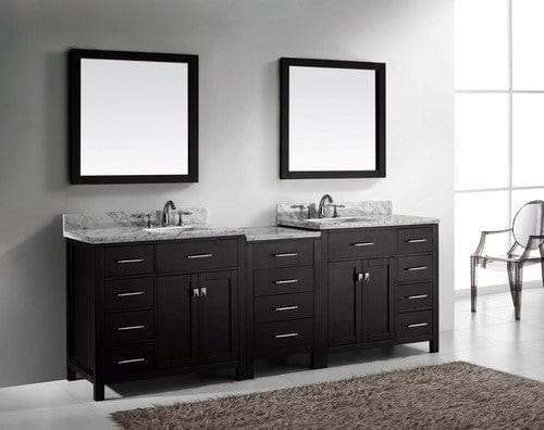 Virtu USA Caroline Parkway 93 Double Bathroom Vanity Set in Espresso w/ Italian Carrara White Marble Counter-Top | Square Basin