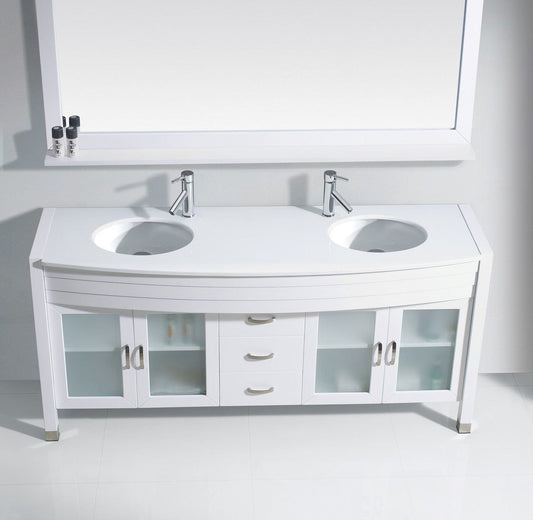 Virtu USA Ava 63 Double Bathroom Vanity Set in White w/ White Stone Counter-Top | Round Basin