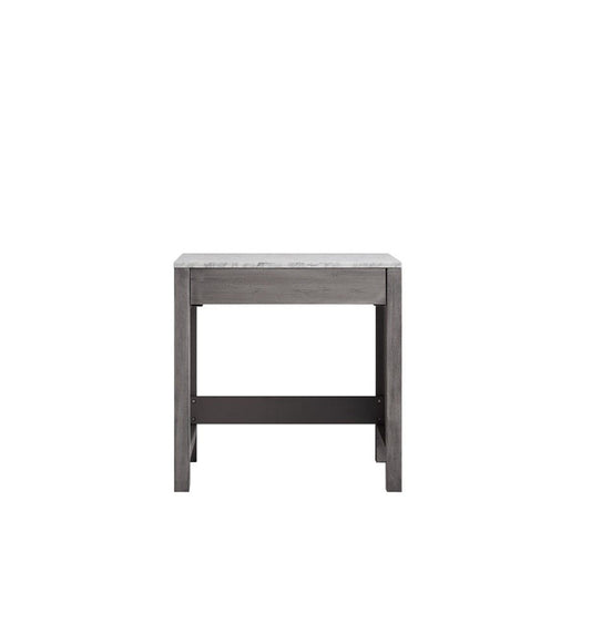 Lexora Jacques 30" Distressed Grey Make-Up Table | White Carrara Marble Top