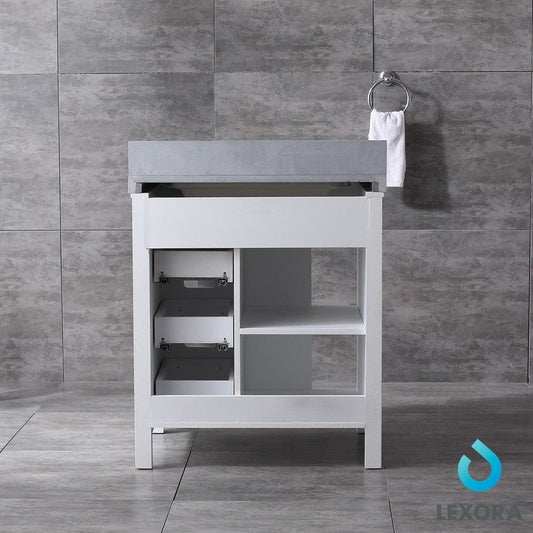 Lexora Marsyas 30" White Single Vanity Set | Grey Quartz Top | White Ceramic Square Undermount Sink | 28" Mirror