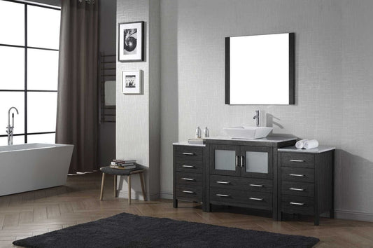 Virtu USA Dior 68 Single Bathroom Vanity Set in Zebra Grey w/ Italian Carrara White Marble Counter-Top | Vessel Sink