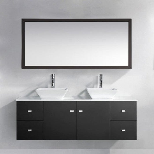 Virtu USA Clarissa 61 Double Bathroom Vanity Set in Espresso w/ White Artificial Stone Counter-Top