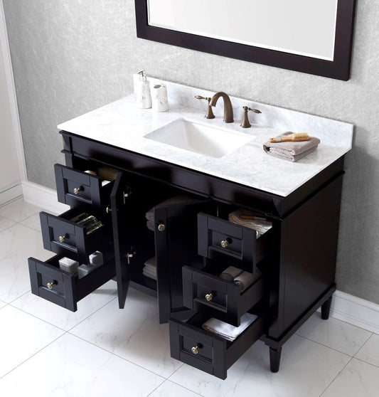 Virtu USA Tiffany 48 Single Bathroom Vanity Set in Espresso w/ Italian Carrara White Marble Counter-Top | Square Basin