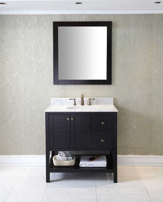 Virtu USA Winterfell 36 Single Bathroom Vanity Set in Espresso w/ Italian Carrara White Marble Counter-Top | Round Basin