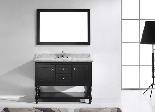 Virtu USA Julianna 48 Single Bathroom Vanity Set in Espresso w/ Italian Carrara White Marble Counter-Top | Square Basin