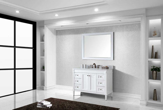 Virtu USA Tiffany 48 Single Bathroom Vanity Set in White w/ Italian Carrara White Marble Counter-Top | Square Basin