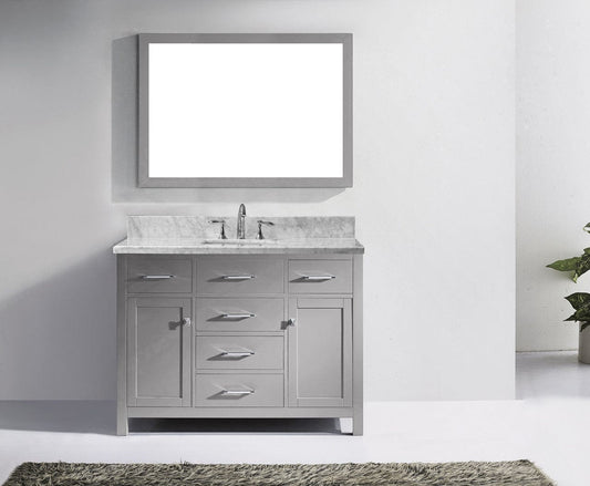 Virtu USA Caroline 48 Single Bathroom Vanity in Cashmere Grey w/ Marble Top & Square Sink w/ Mirror
