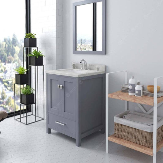 Virtu USA Caroline Avenue Contemporary Gray 24" Single Square Sink Vanity Set with Dazzle White Top