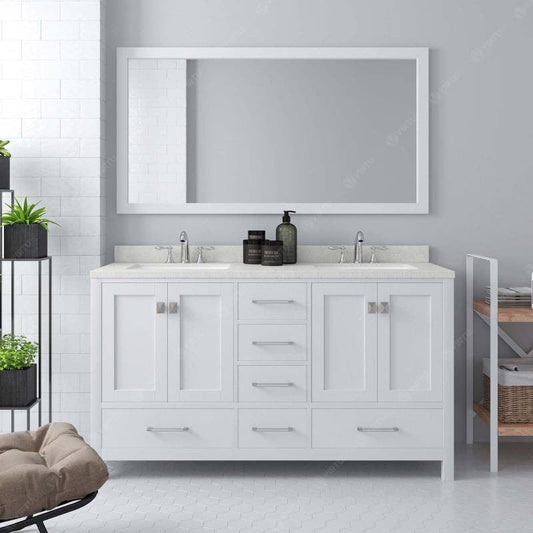 Virtu USA Caroline Avenue White Contemporary 60" Double Square Sink Vanity with Dazzle White Top