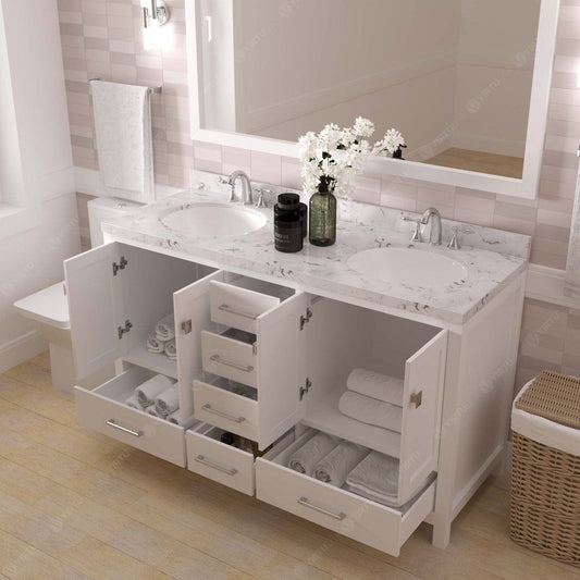 Caroline Avenue 60" Double Bath Vanity in White with White Quartz Top