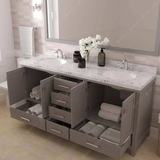 Caroline Avenue 72" Double Bath Vanity in Gray with White Quartz Top
