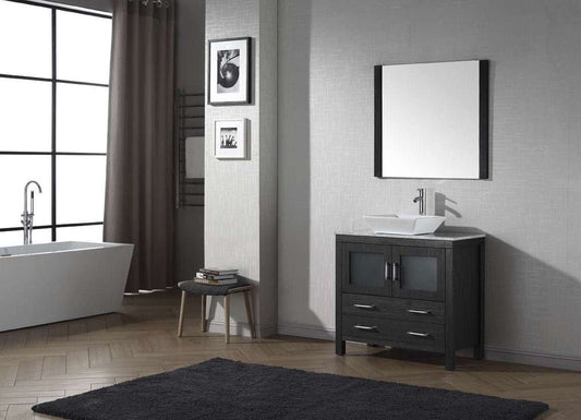 Virtu USA Dior 36 Single Bathroom Vanity Set in Zebra Grey w/ Pure White Stone Counter-Top | Vessel Sink