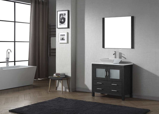 Virtu USA Dior 36 Single Bathroom Vanity Set in Espresso w/ Pure White Stone Counter-Top | Vessel Sink