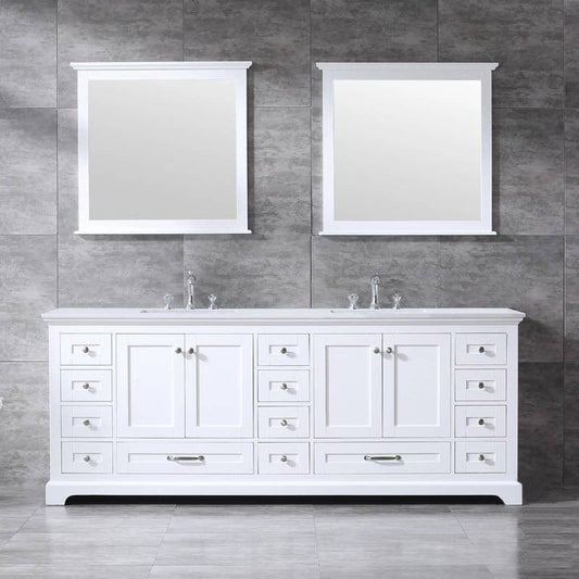 Lexora Dukes Modern 84" White Double Sink Vanity with Mirror