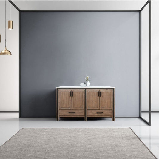 Ziva Transitional Rustic Barnwood 60" Double Vanity, Cultured Marble Top, White Square Sinks | LZV352260SNJS000