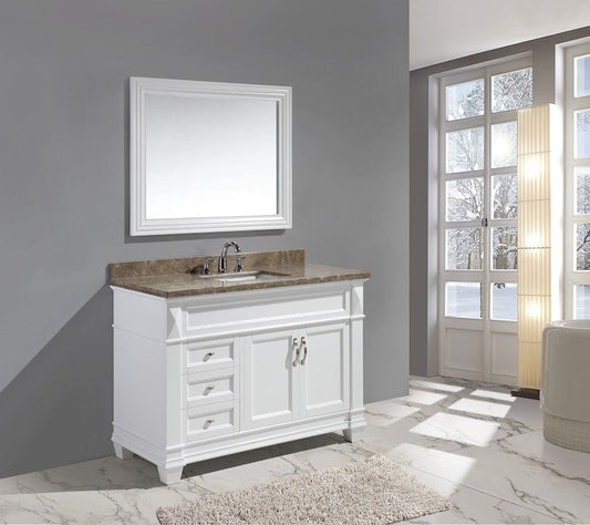 Virtu USA Victoria 48 Single Bathroom Vanity Set in White w/ Italian Carrara White Marble Counter-Top | Square Basin