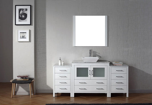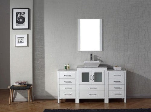 Virtu USA Dior 64 Single Bathroom Vanity Set in White w/ Italian Carrara White Marble Counter-Top | Vessel Sink