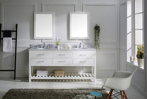 Virtu USA Caroline Estate 72 Double Bathroom Vanity Set in White w/ Italian Carrara White Marble Counter-Top |Ê Round Basin
