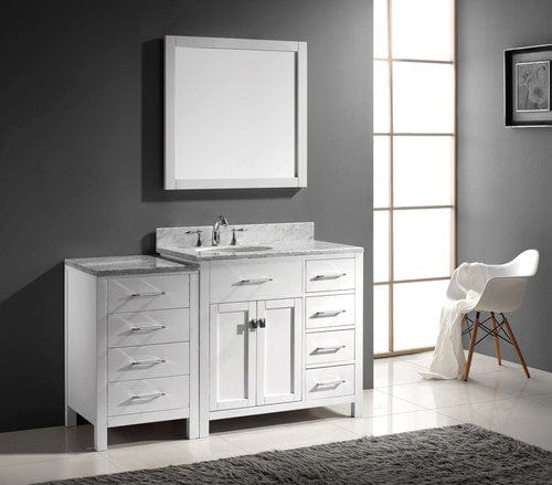Virtu USA Caroline Parkway 57 Single Bathroom Vanity Set in White w/ Italian Carrara White Marble Counter-Top |Ê Round Basin