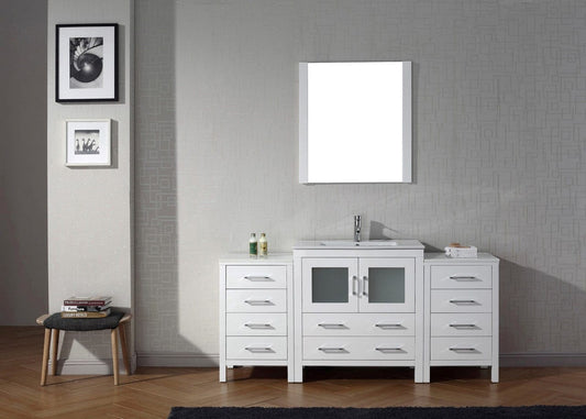 Virtu USA Dior 68 Single Bathroom Vanity Set in White w/ Ceramic Counter-Top | Integrated Sink