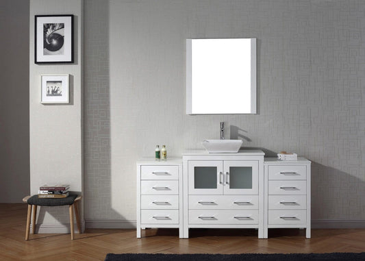Virtu USA Dior 68 Single Bathroom Vanity Set in White w/ Pure White Stone Counter-Top | Vessel Sink