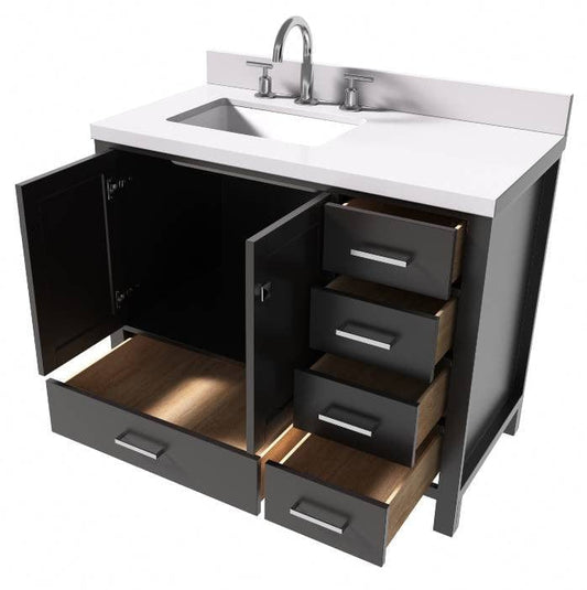 Ariel Cambridge Transitional Espresso 43" Left Offset Rectangle Sink Vanity w/ White Quartz Countertop