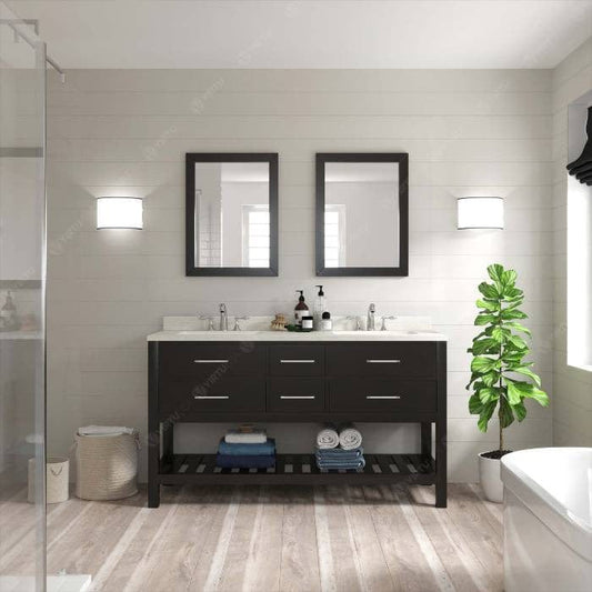 Caroline Estate Contemporary Espresso 60" Double Square Sink Vanity Set w/ Polished Chrome Faucet