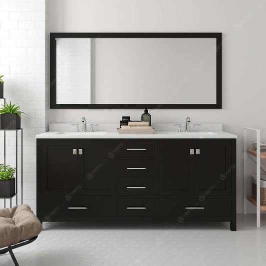 Virtu USA Caroline Avenue Contemporary Espresso 72" Double Square Sink Vanity with Dazzle White Top