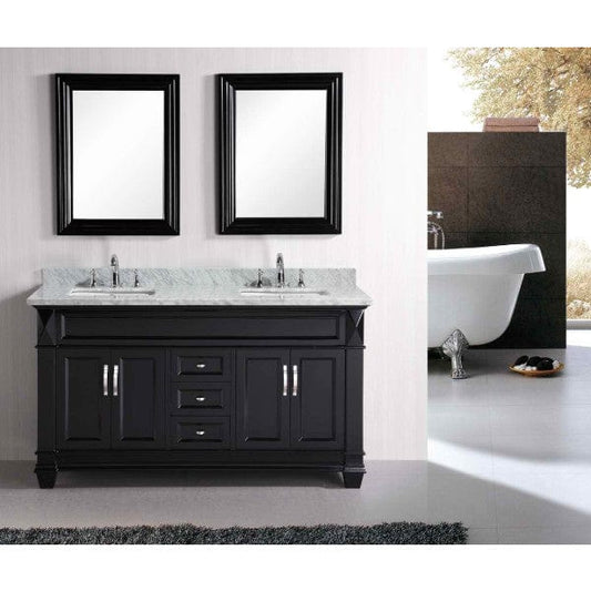 Hudson 61″ Espresso Double Sink Vanity With Carrara Marble Countertop