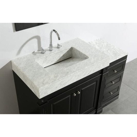 Lexora Dukes 48" Espresso Single Vanity | White Carrara Marble Top | White Ceramic Square Undermount Sink | No Mirror