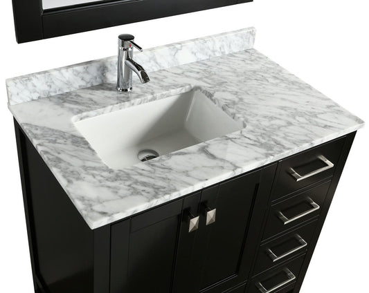 Design Element London Hyde 36" Vanity in Espresso w/ Carrara Marble Countertop | Square Basin