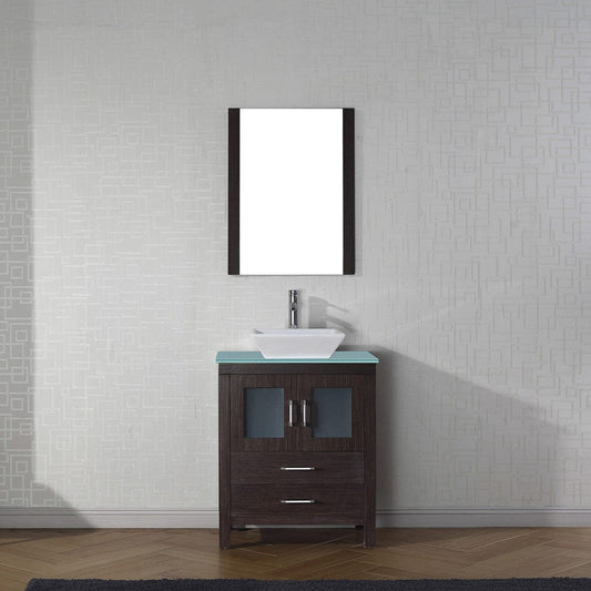 Virtu USA Dior 28 Single Bathroom Vanity in Espresso w/ Aqua Tempered Glass Top & Square Sink