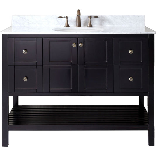 Virtu USA Winterfell 48 Single Bathroom Vanity Set in Espresso w/ Italian Carrara White Marble Counter-Top | Round Basin