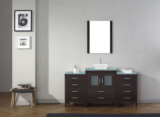 Virtu USA Dior 64 Single Bathroom Vanity Set in Espresso w/ Tempered Glass Counter-Top | Vessel Sink