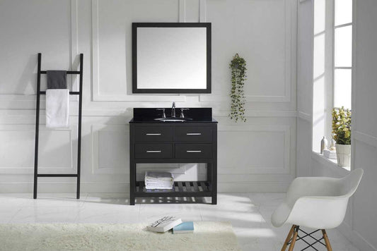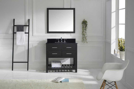 Virtu USA Caroline Estate 36 Single Bathroom Vanity Set in Espresso w/ Black Galaxy Granite Counter-Top | Square Basin
