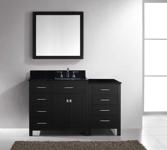 Virtu USA Caroline Parkway 57 Single Bathroom Vanity Set in Espresso w/ Black Galaxy Granite Counter-Top | Square Basin - Leftside Drawer